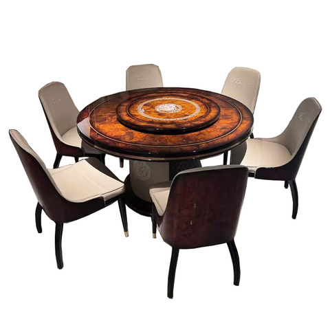 Juego de mesa de comedor de lujo italiano, mesa giratoria moderna de 6 plazas con tapa de mármol de gama alta para uso doméstico en hoteles con 6 sillas