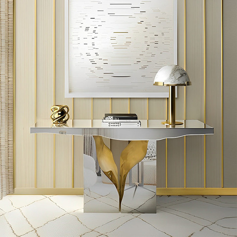 Luxo Moderna Sala De Estar Metal Entryway Console Mesa De Ouro Irregular Aço Inoxidável Entrada Criativa Prata Console Mesa